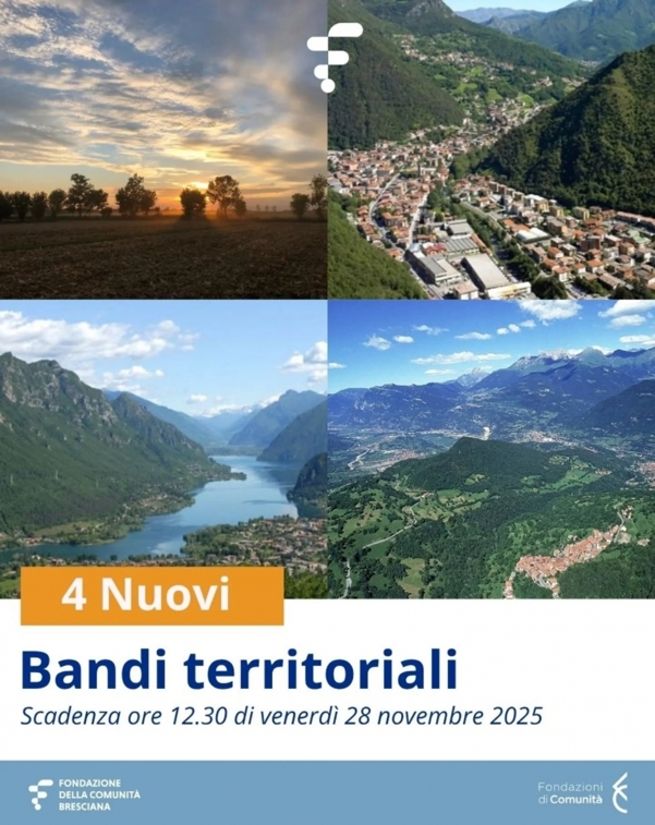 Cassa Padana fa parte degli enti co-finanziatori dei bandi di comunità della Fondazione Comunità Bresciana relativi ai Bandi territoriali per la Valle Trompia, per la Bassa Bresciana e per la Valle Camonica in scadenza il 28 novembre prossimo.