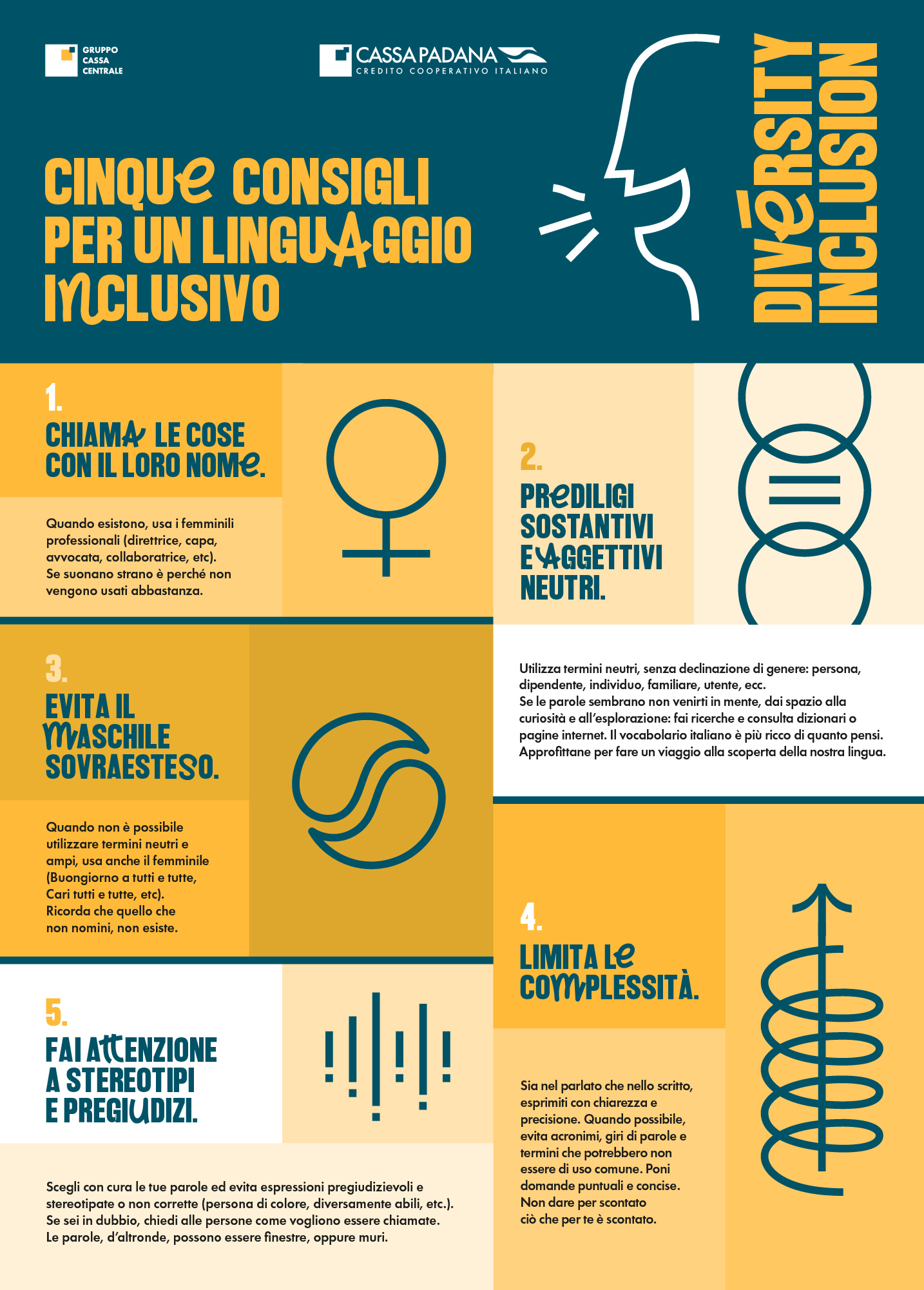 Cassa Padana BCC aderisce al Manifesto "Linguaggio Inclusivo", parte del percorso di Diversità e Inclusione del Gruppo Cassa Centrale, che promuove l’uso responsabile delle parole per creare ambienti di lavoro più inclusivi e accoglienti verso tutte le diversità.